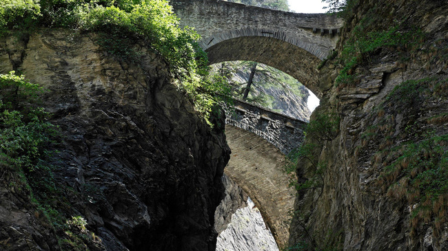 The Viamala Gorge is found along a famous hiking trail, previously a major trade route across the Alps, previously...