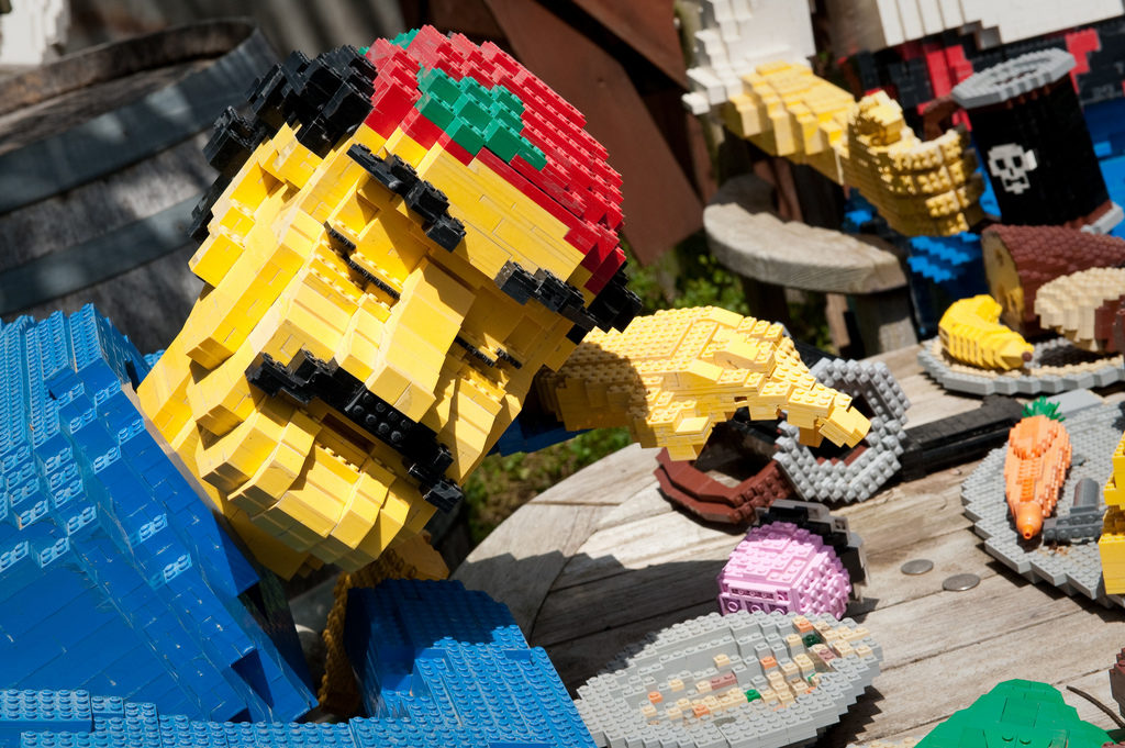 A moustachioed man made of lego at Legoland California (Photo: Josh Hallettvia Flickr)