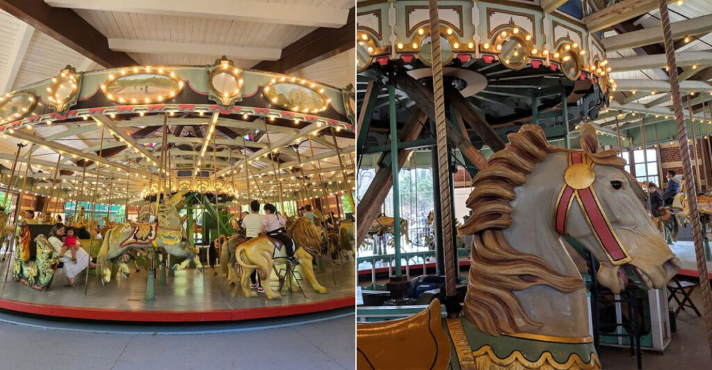 Most carousels stick to horses, but this park went a step further. The carousel features not only horses but also lions, giraffes, deer, and other animals, all carved with the same extraordinary attention to detail. Each animal has a personality that feels intentional, not accidental.